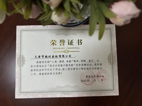 此次活动,不仅实现了企业与社区优势互补,资源共享,也发挥了党建引领的作用,为社区居民提供了更便民惠民高质量服务。同时我公司积极响应《2023年新兴街“乡村振兴捐款实施方案”》精神,第一时间捐赠1000元助力乡村振兴。犀地社区党委在社区活动室向我公司授予《2023年度“助力乡村振兴”热心公益企业》荣誉称号。